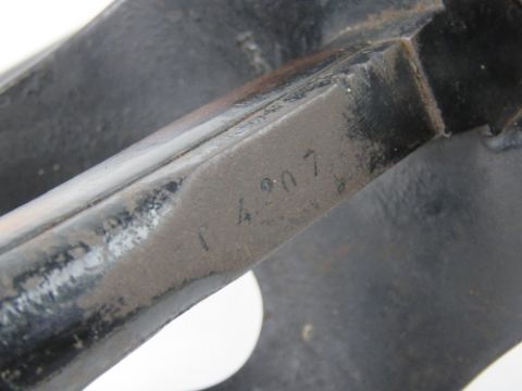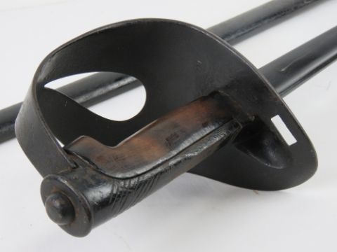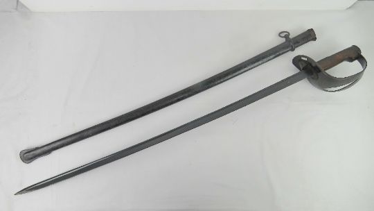 A WWI Italian heavy cavalry troopers sword with scabbard, blade measuring 90cm in length, grip and scabbard both number G4207.