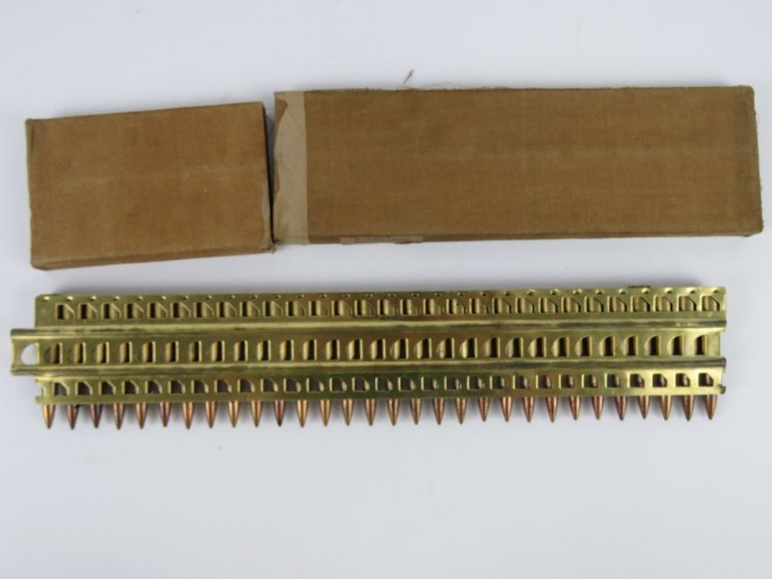 A Japanese 7.7 Woodpecker strip with 30 inert rounds in box.