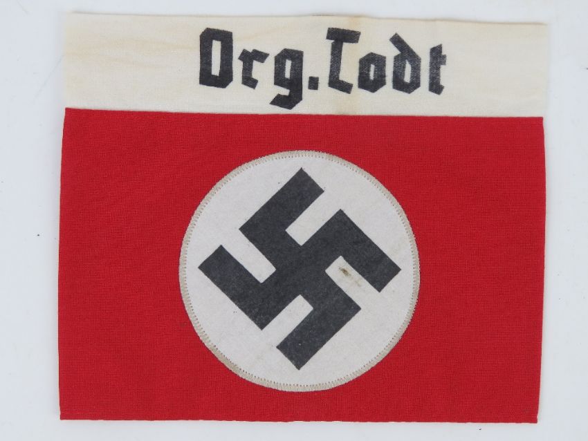 A WWII German Organisation Todt arm band, in frame.