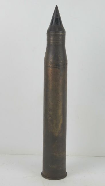 An inert WWII German 5cm Pak Armour piercing shell, dated 1943 with German marks upon.