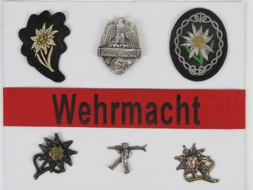 Six WWII German Wehrmacht badges, in frame.