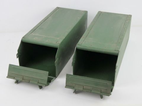 Two rare Soviet Russian Army steel ammo boxes for the 14.5mm KVPT cannon.
