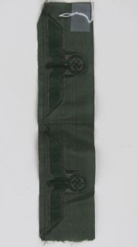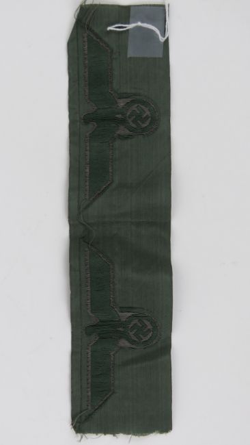 A pair of unused embroidered WWII German uniform patches of swastika and eagle design, 24 x 6cm.