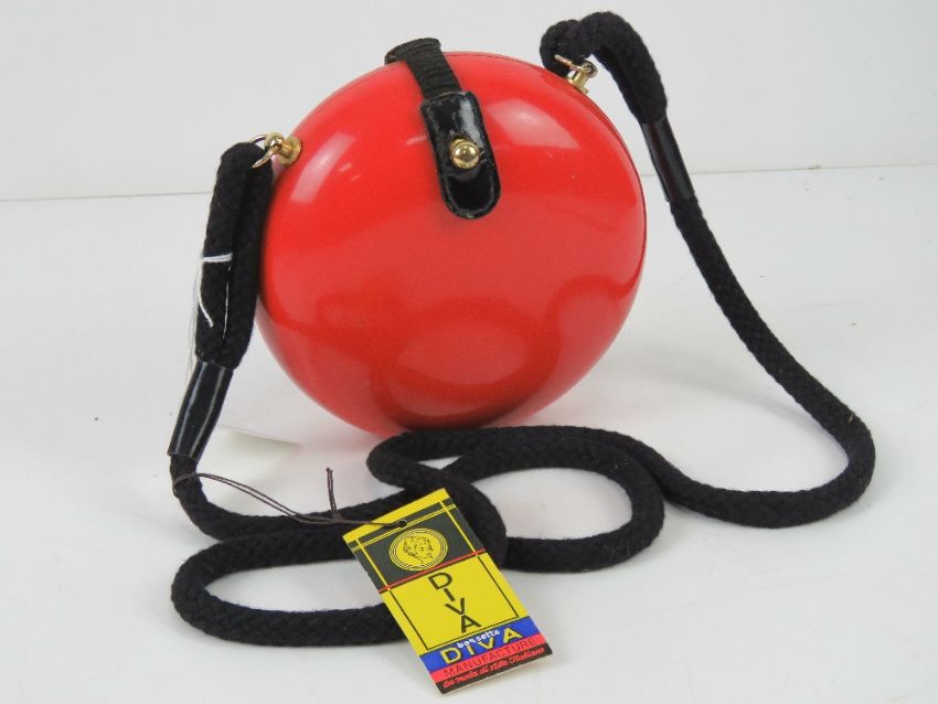 A c1960s Italian pop art style purse in red, marked for Diva with original label, 15cm diameter.