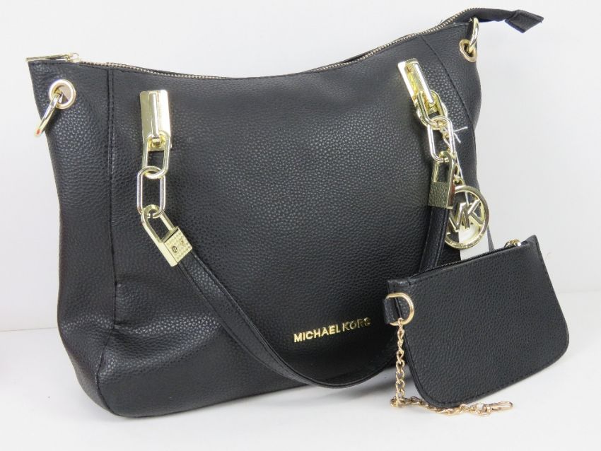 A black Michael Kors handbag having purse within, lining a/f near pocket 34 x 26cm.