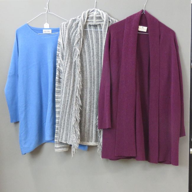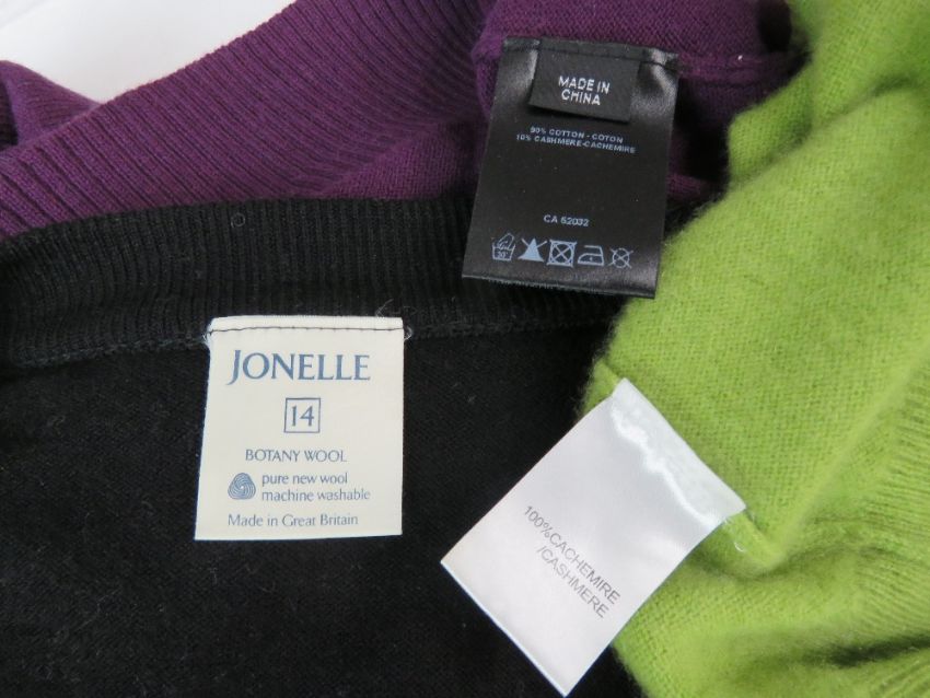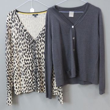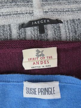 Ladies jumpers inc cashmere, pure new wool, leopard print by Hobbs, etc. Approx UK size 14-16. Eight items.