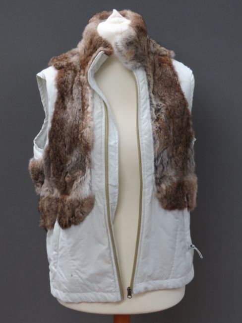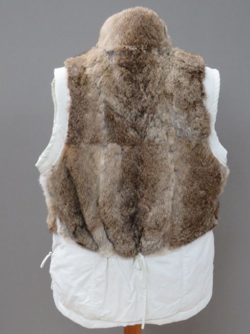 A ladies poly cotton gilet having rabbit fur trim, made by Chiensee size L.