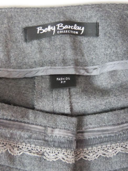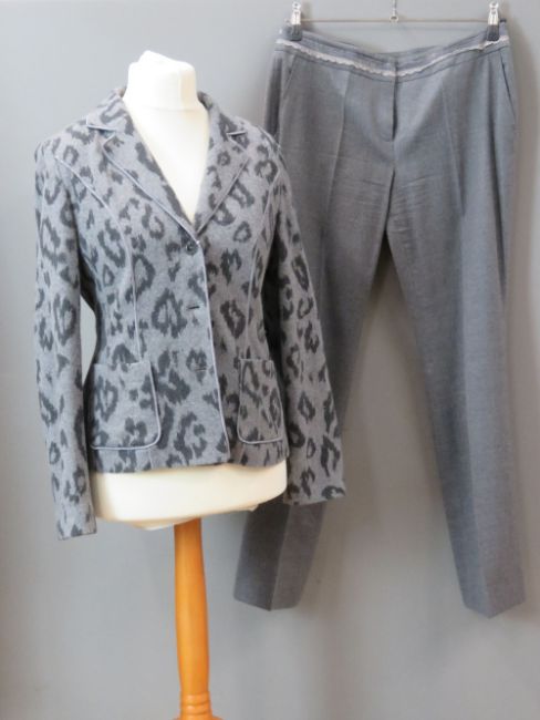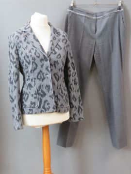 Betty Barclay; Ladies jacket and trousers, jacket being 80% virgin wool UK size 14, trousers 98% virgin wool, UK size 16. Approx measurements; Jacket 40" chest, 25 1/4" length at back inc collar, 17 3/4" sleeve length underarm. Trousers 35" waist, 32 1/4" inside leg.