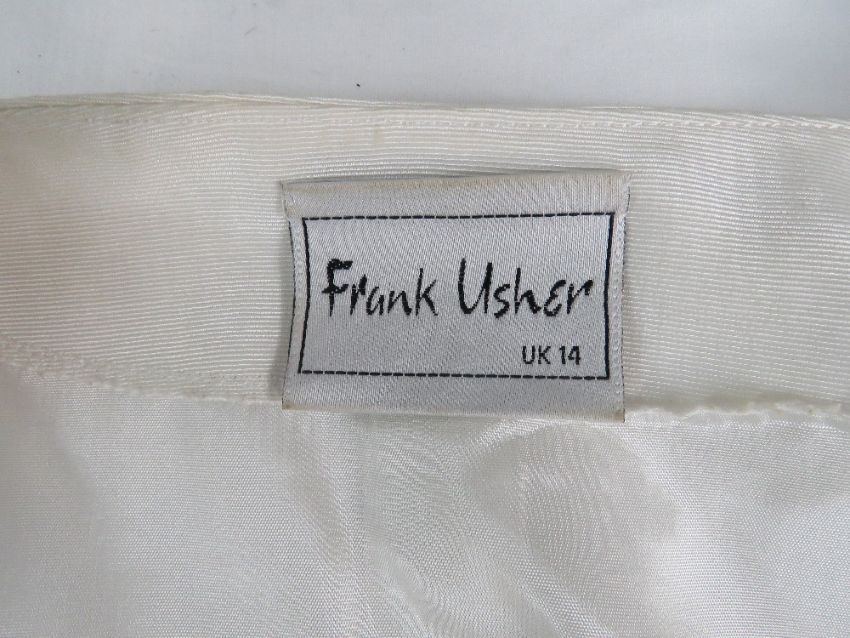 Frank Usher; 50% cotton ladies white jacket, UK size 14. Approx measurements; 40" chest, 22" length at back, 16" sleeve length underarm. Together with a Frank Usher vest UK size 14.