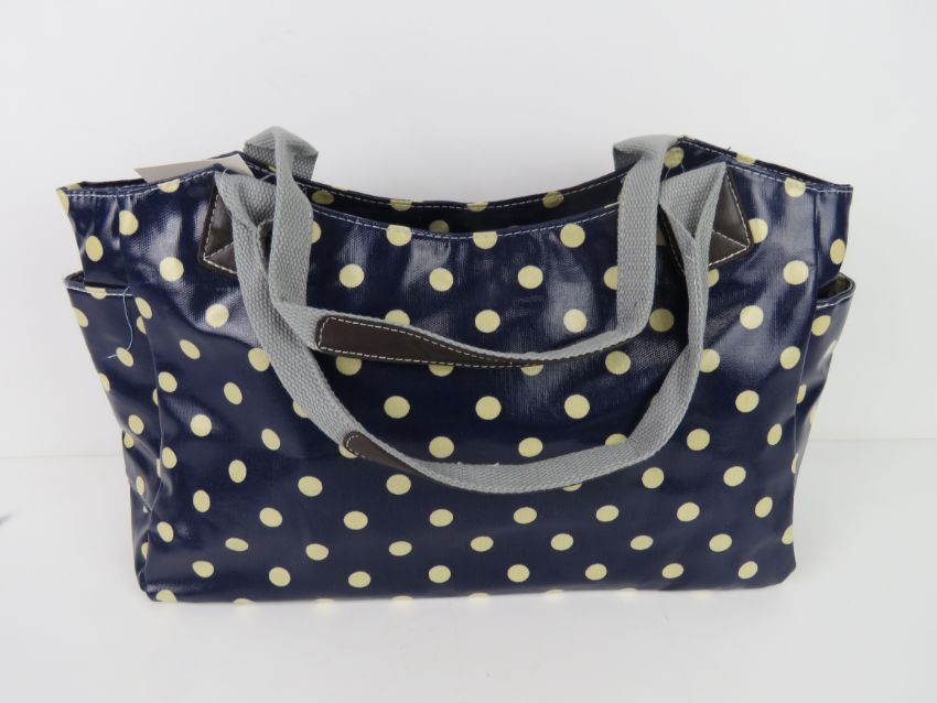 A blue polka dot pattern handbag 'as new', approx 39 x 26cm.