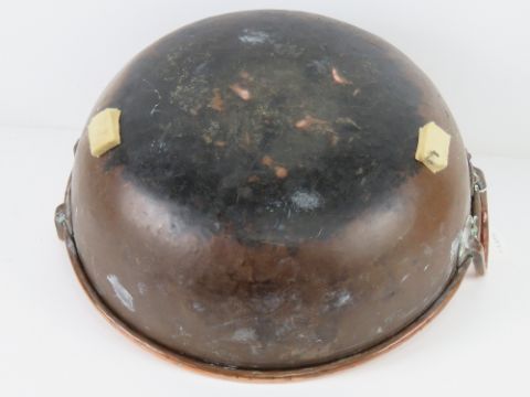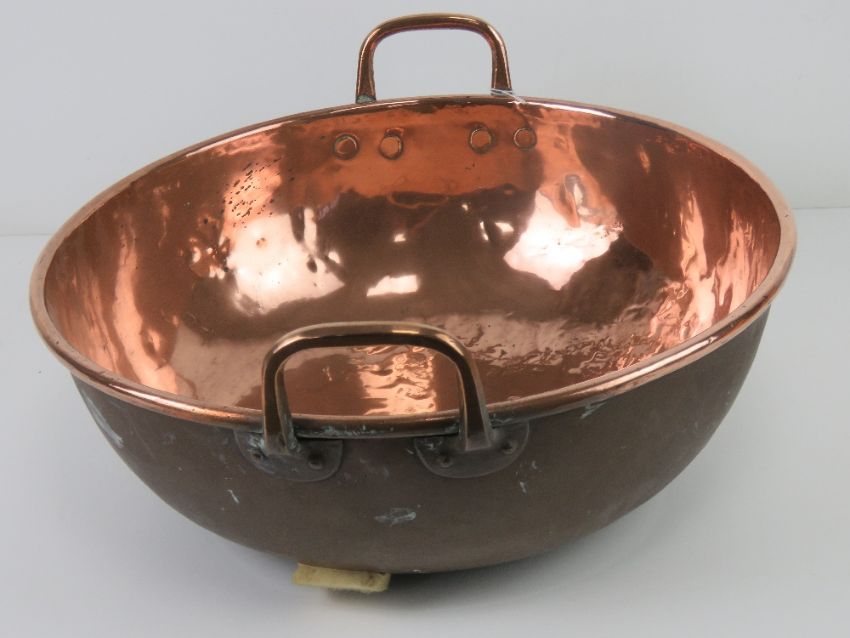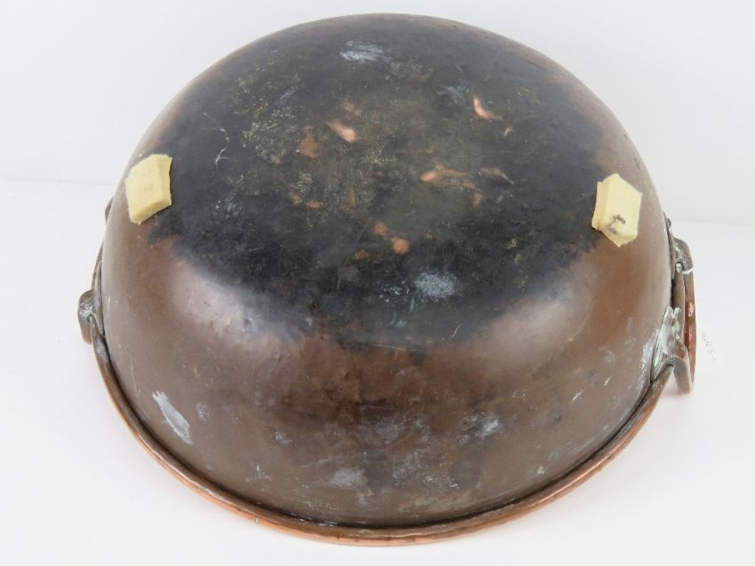 A large copper balti style pan, 40cm dia with twin handles.