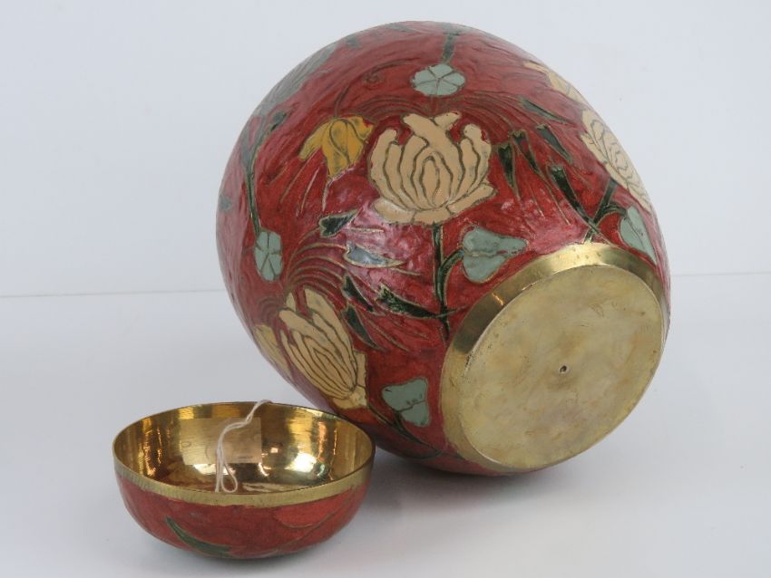 A contemporary brass and enamelled ginger jar and cover, 22cm high.