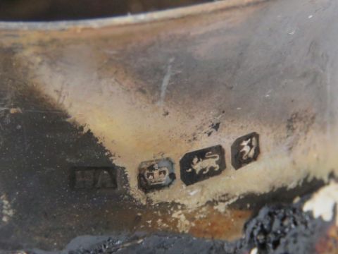A quantity of HM silver table spoons and HM silver napkins rings having sustained fire damage. Total weight 9.73ozt.