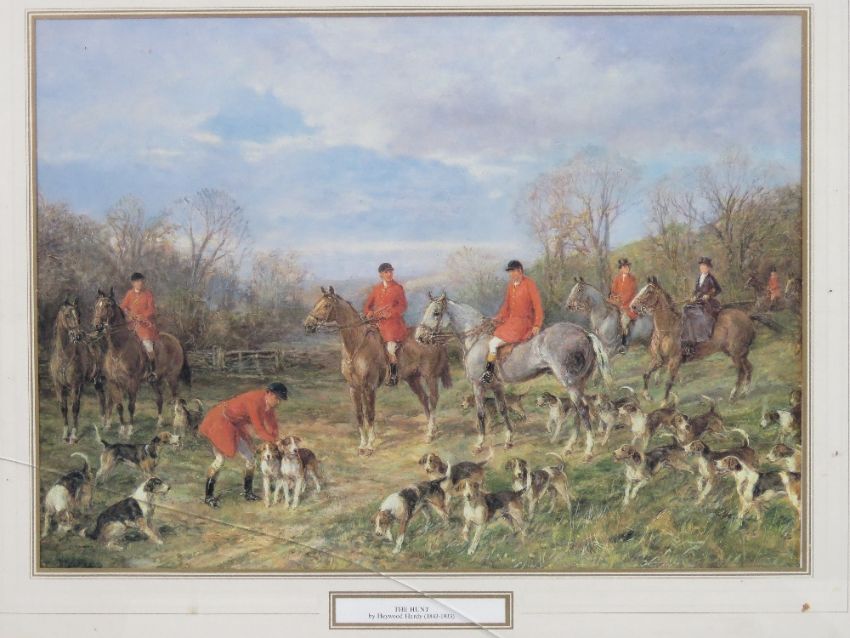 A pair of hunting-themed prints 'The Hunt' and 'Through the Copse' by Haywood Hardy, each 40 x 28cm, framed and mounted (one glass a/f).