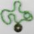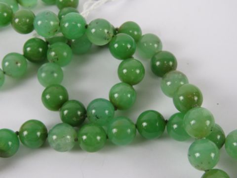 A jade bead necklace having disc pendant upon, individually knotted on silken thread, approx 79cm in length, disc 5cm dia.