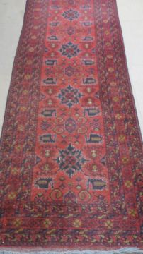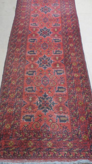 An Afghan style wool and silk runner bearing John Lewis label for £475, 290 x 84cm.