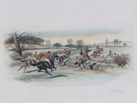 A pair of coloured racing prints 'The Favourite Beat' and 'O Rasper' by Harrington Bird, 28 x 41cm each within Hogarth frame.