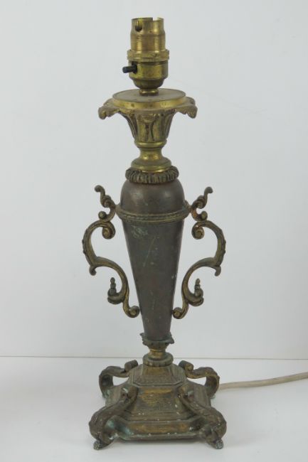 A brass table lamp in the form of an urn on plinth, standing 34cm high.
