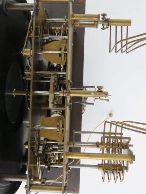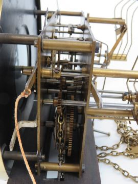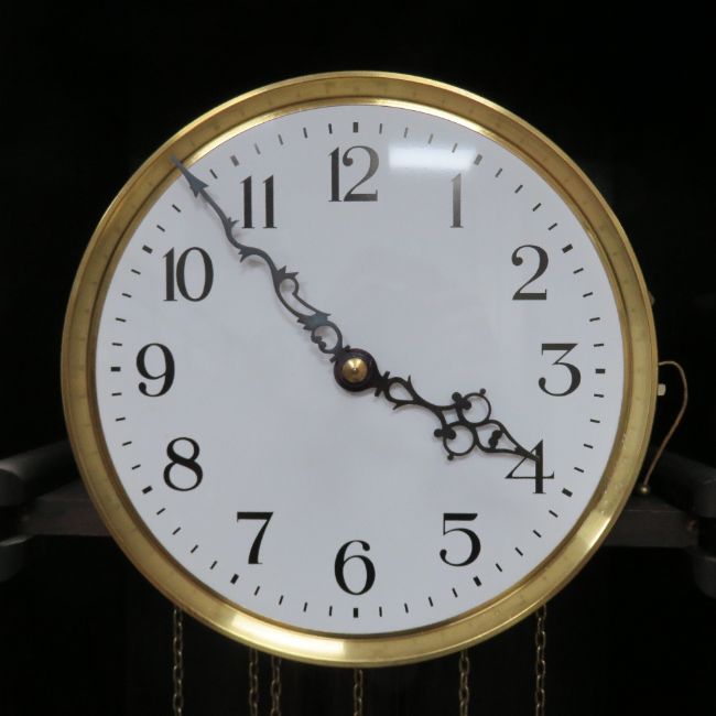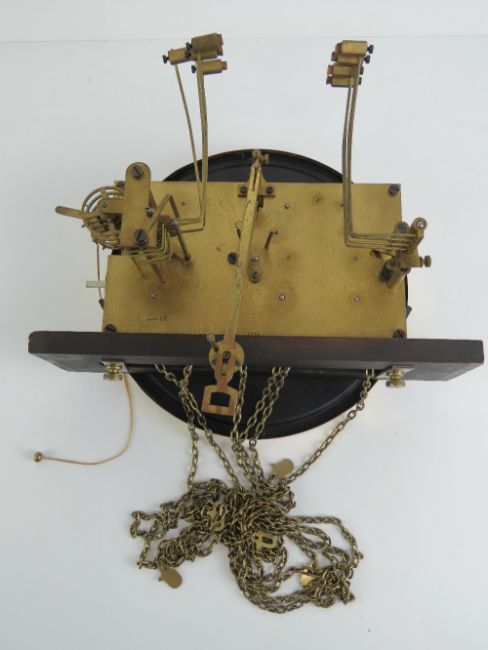 A c1930s stained oak long case hall clock circular 24cm dial with Arabic numerals upon all before the three train striking movement, standing 190cm high.