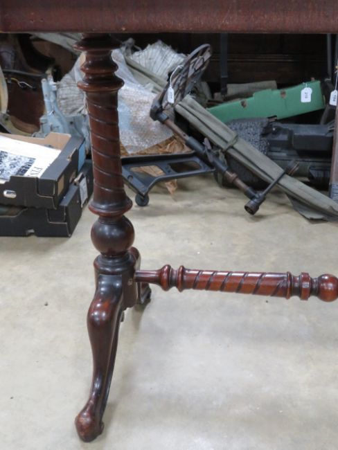 A Victorian mahogany side table, twin supports, raised over four outswept feet united by a turned stretcher, 90 x 48 x 68cm.
