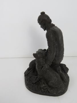 A Heridites bronzed figuring of shepherd with sheepdog and lamb.