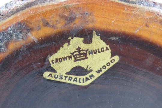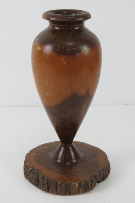 An Australian carved wooden vase, marked to the base 'Crown Mulga Australian wood' standing 25cm high.