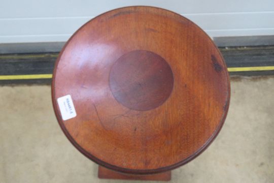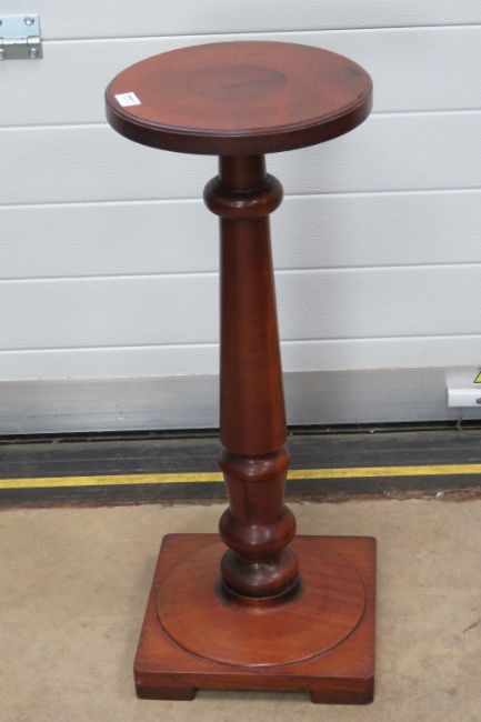 A turned mahogany torchere stand raised over square shaped base, 77cm high.