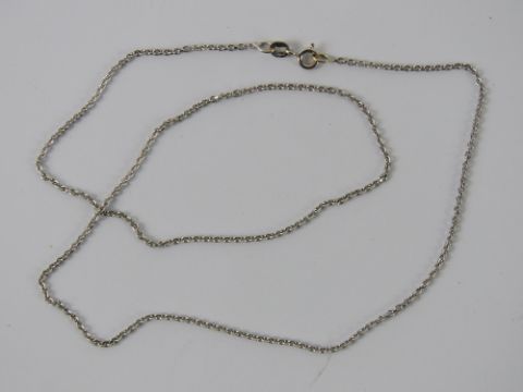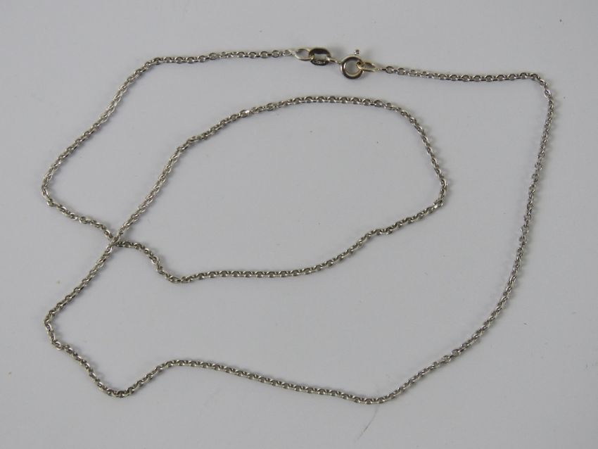 An 18ct white gold chain necklace hallmarked 750 measuring 47cm in length, slight wear to clasp, 4.7g.