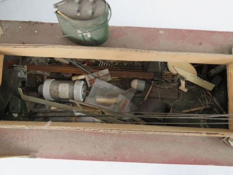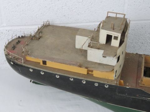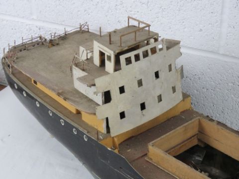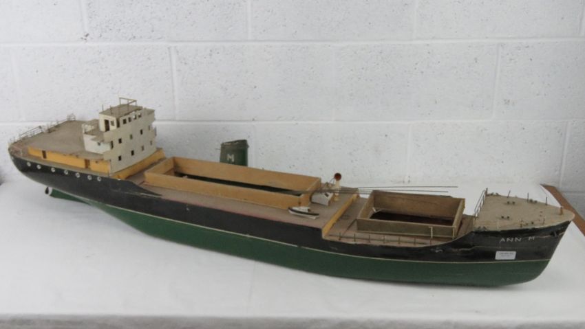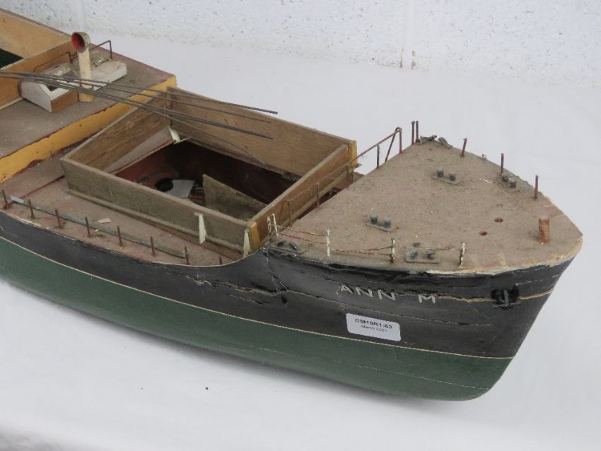 A scratch built scale model part finished vintage wooden 'Ann M' merchant vessel, with various ancillary parts, a/f. 148cm.