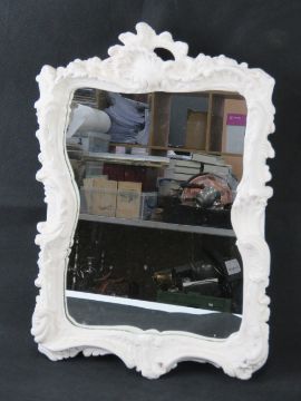 A contemporary mirror having white painted frame with acanthus leaf design, 55cm high overall.