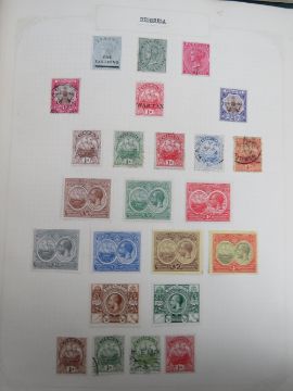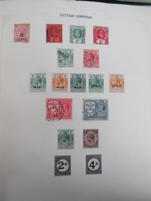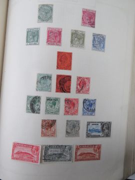 A stamp album containing a quantity of Victorian and 20thC stamps. Victorian stamps include Bahamas, Barbados, Bermuda, British Honduras, Canada, Ceylon, Cyprus inc Penny Red, Gibraltar, Grenada, UK, Hong Kong, India, Jamaica, East Africa, New Zealand, St Lucia, etc, etc etc. Together with a pair of stuck down albums containing a quantity of assorted mostly 20thC world stamps. Also three single albums of stuck down stamps and an empty stamp album. Seven items.