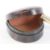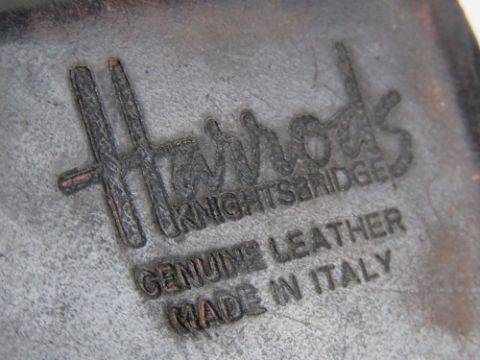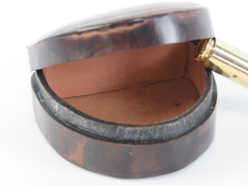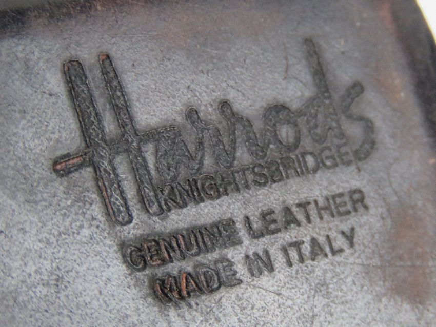 Two leather covered stud boxes manufactured by and stamped Harrods, one horseshoe shaped measuring 6 x 6 x 2.5cm.