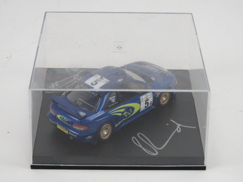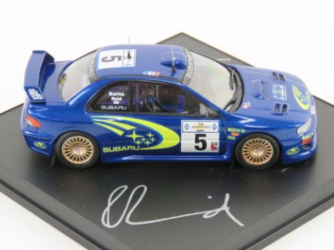 A Trofeu miniature Subaru Impreza Burns/Reid racing car signed by both drivers, Richard Burns and Robert Reid.