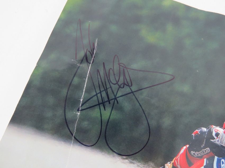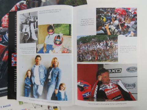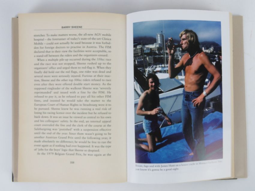 Book 'Foggy' the autobiography of Carl Fogherty containing 1974 first day cover for the TT races signed by Carl Fogherty, together with a colour poster of and signed by John Mcguinness 30 x 42cm, and the biography of Barry Sheene. Three items.