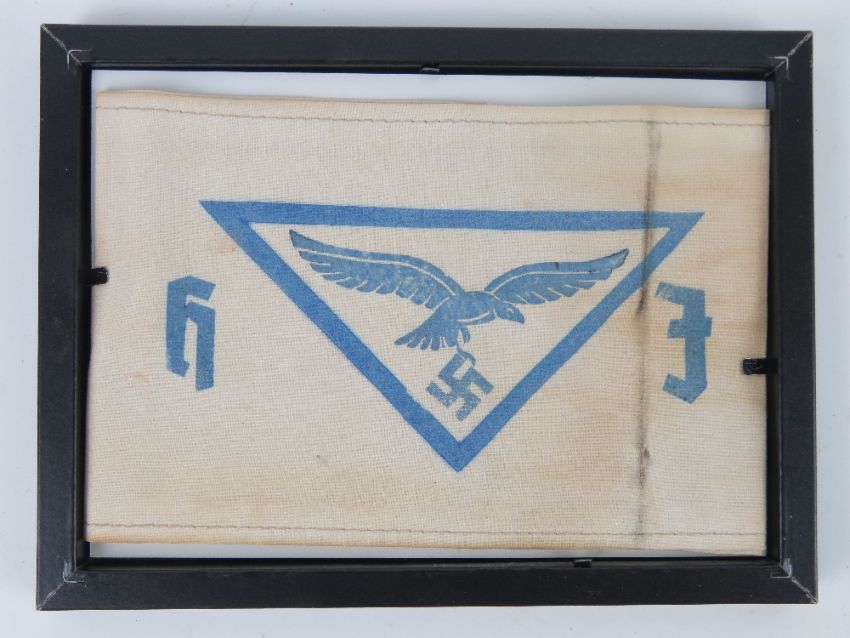 A WWII German Hitler Youth Airforce arm band, in frame.