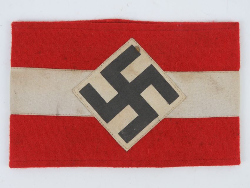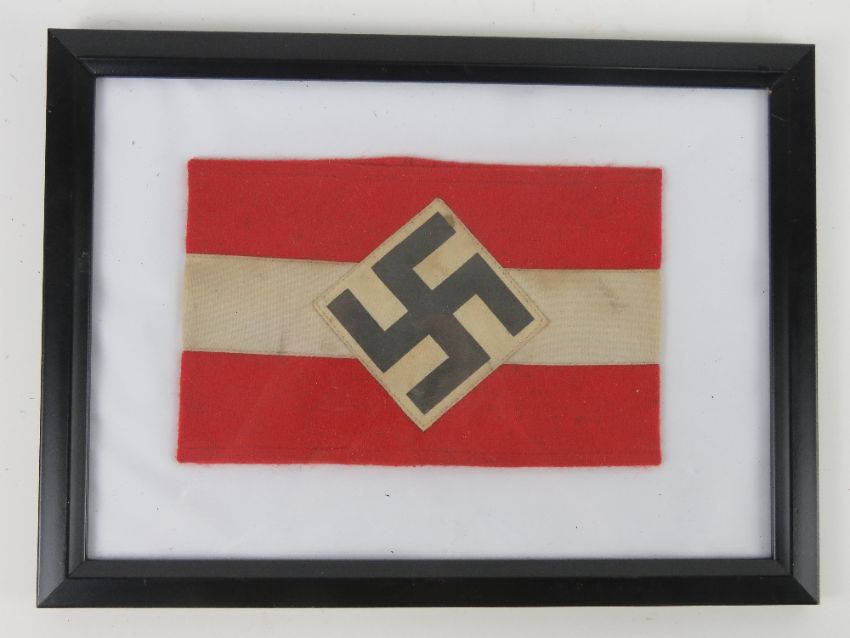 A WWII Hitler Youth great coat arm band, in frame.