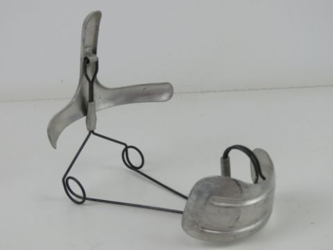 A gas mask mounting frame, used to display and preserve form.
