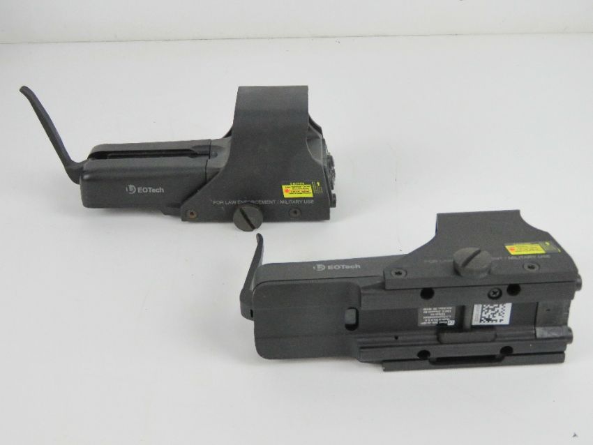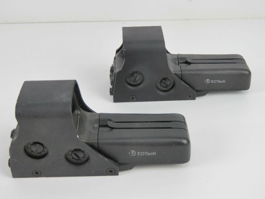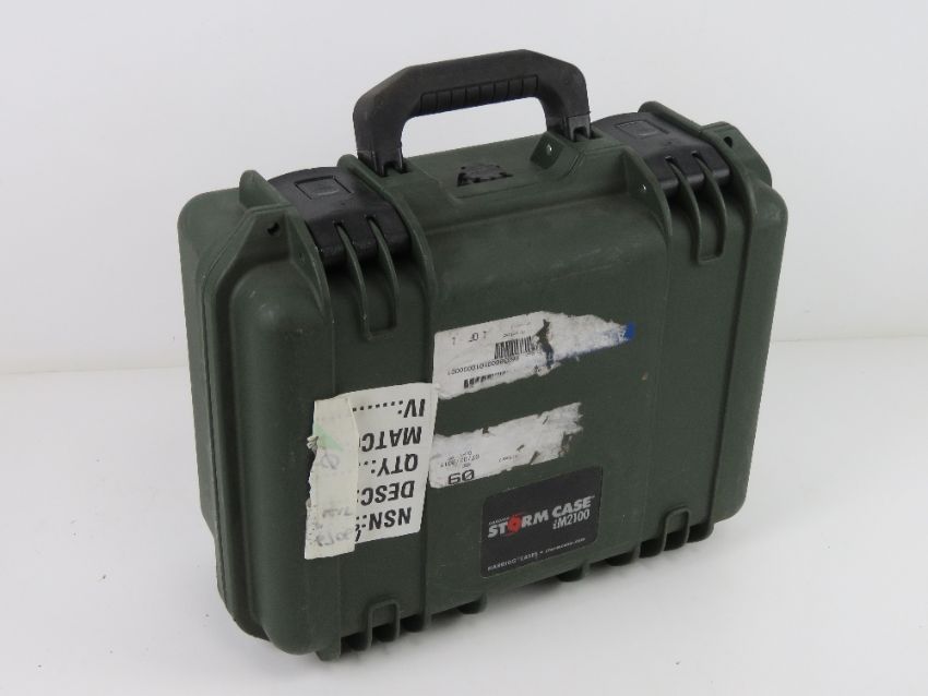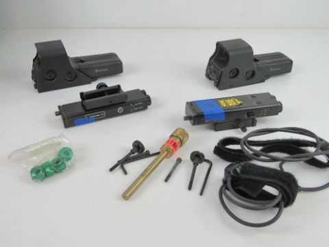 A day/night weapon sight kit type A- MK44 (M323/ GPMG in protective case including; two Eotech sights, two Leica twin beam lasers, two triggers (cable length 400mm), four Leica twin beam filter caps, an extension rod, pro hunter kit, GPMG zeroing chart and a Minigun zeroing chart, with instructions.