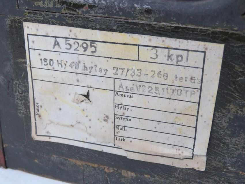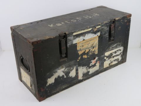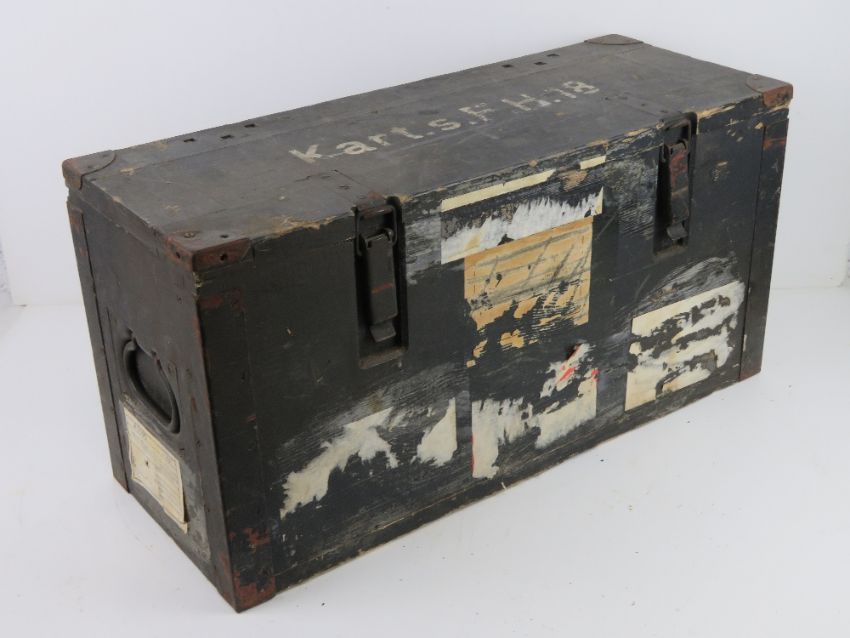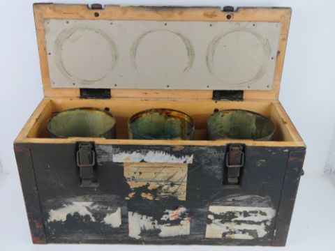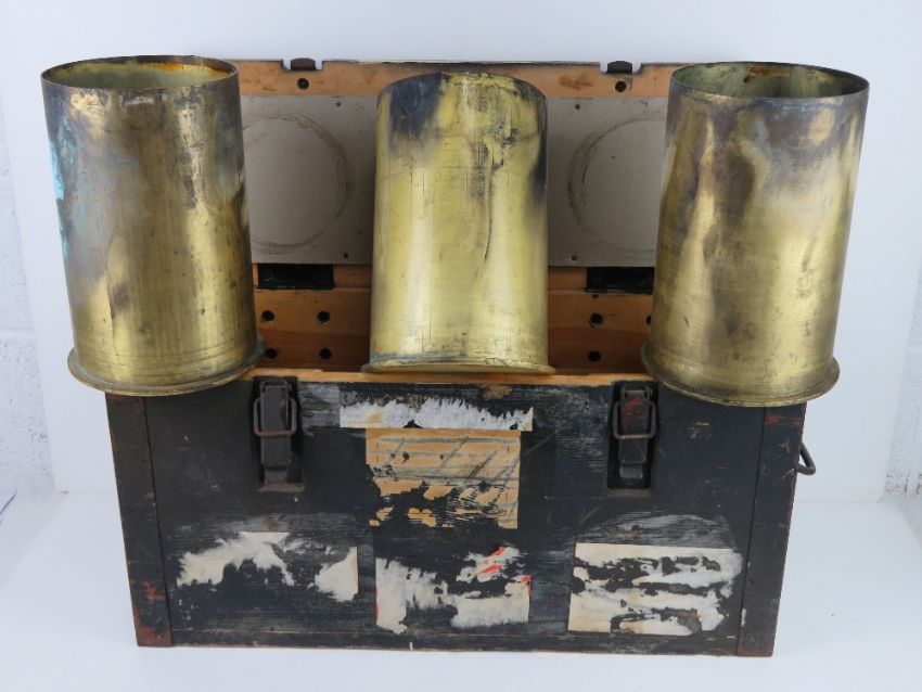 A WWII German F.H.18 transit box with three F.H.18 shells, one dated 1938 and two dated 1937, the box bearing original labels and dated 1940.