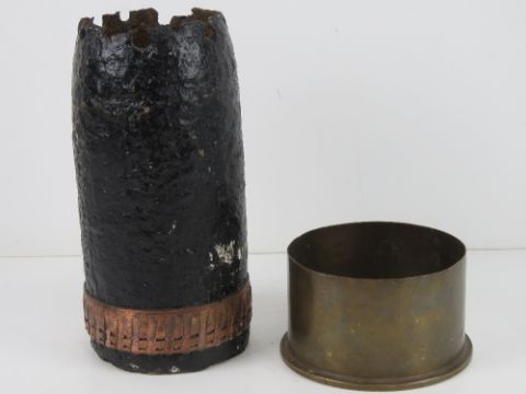 A WWI British 4.5cm Howitzer shell with head, dated 1916.