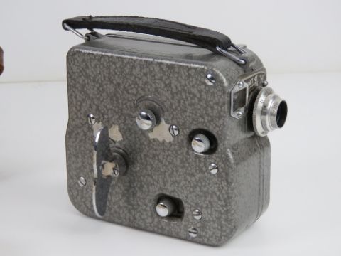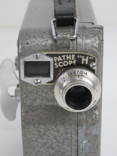 A WWII 1940s British camera, in leather case, made by Pathe "H", with instructions.
