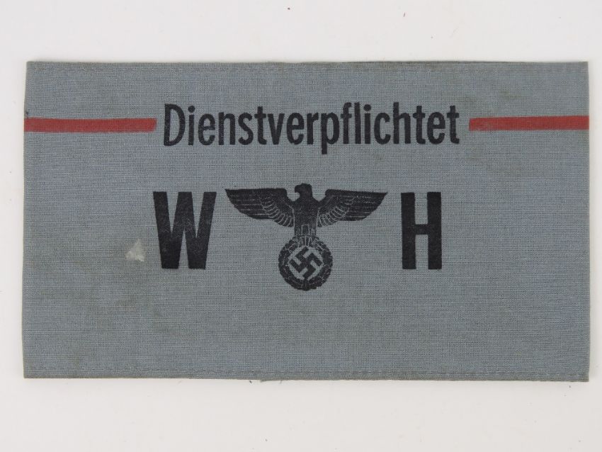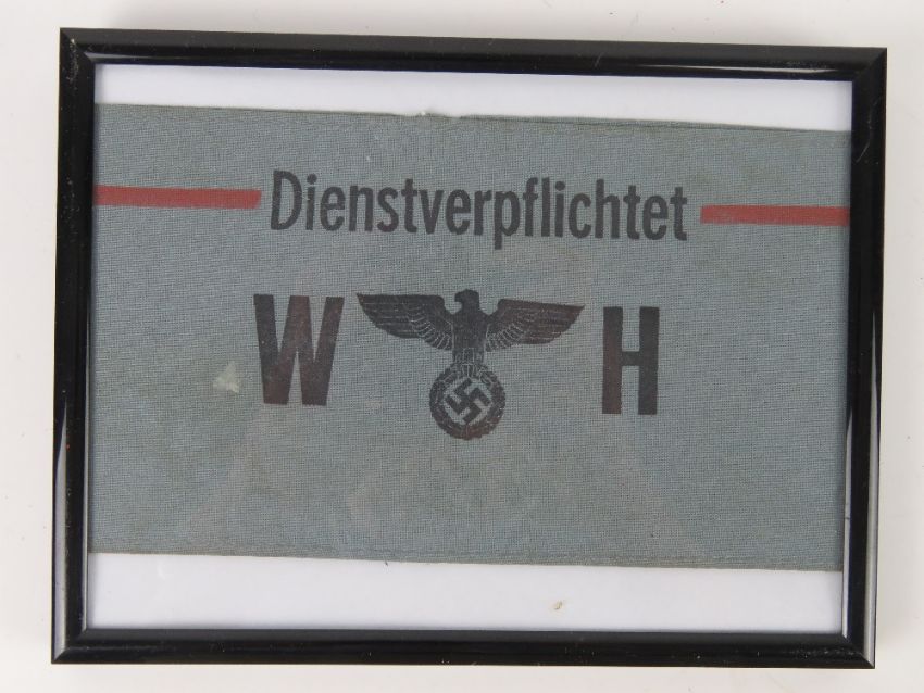 A WWII German Dienstverpflichtet arm band, in frame.