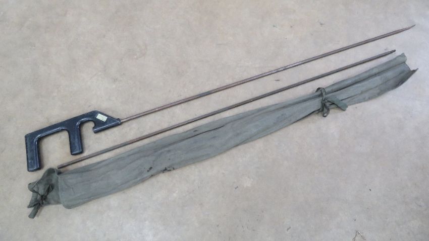 An extendable Beryllium Copper mine prodder with another prodder in bag.