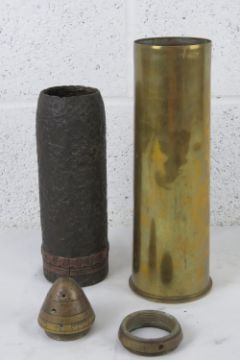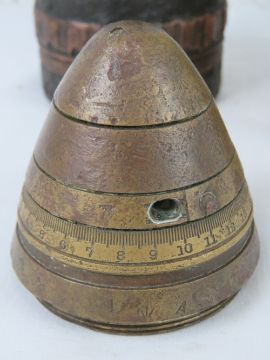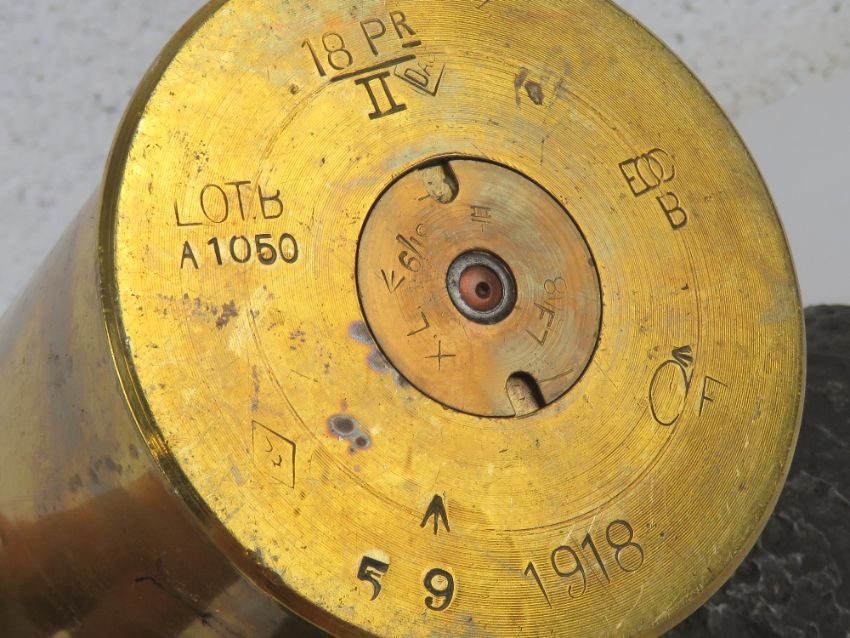 A British 18pr shell dated 1918 with head and fuse.