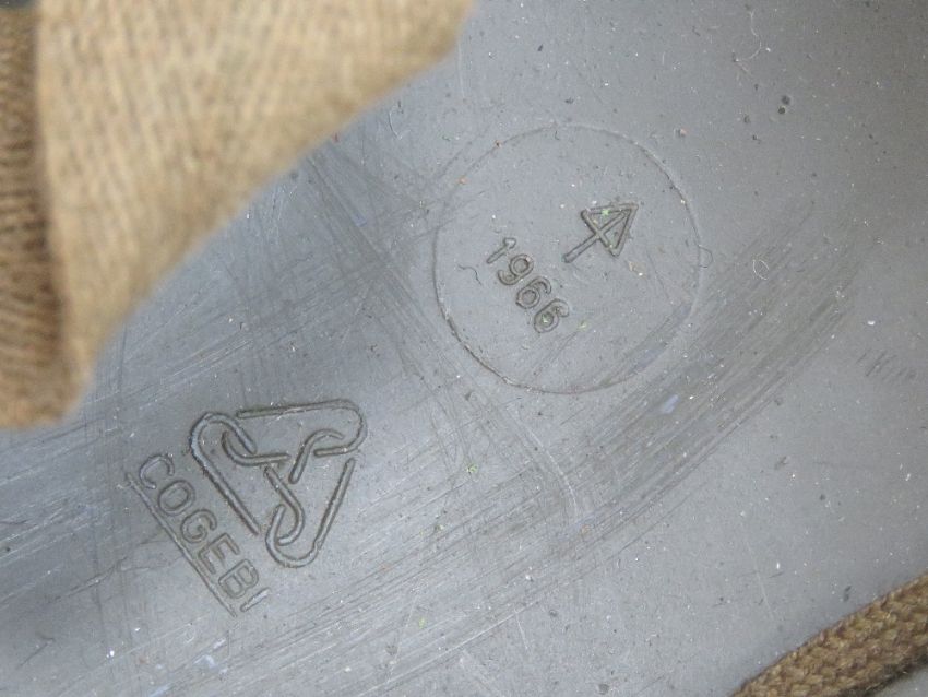 A WWII US Army McCord helmet having heat stamp that dates it to 1945, with replacement St Claire style liner.