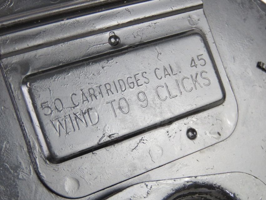 A Thompson 1928 50 round drum magazine.