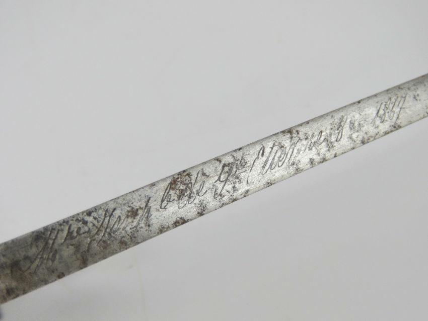 A French 1867 model Chassepot Yataghan bayonet engraved and dated St Etienne...1867 to blade edge, having brass grip and hook quillion, 57.5cm blade.