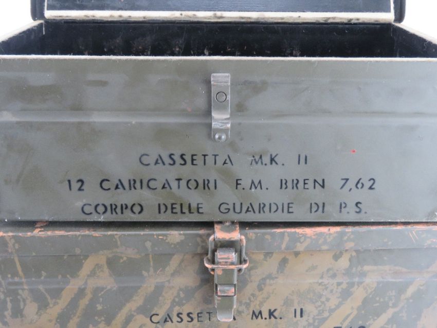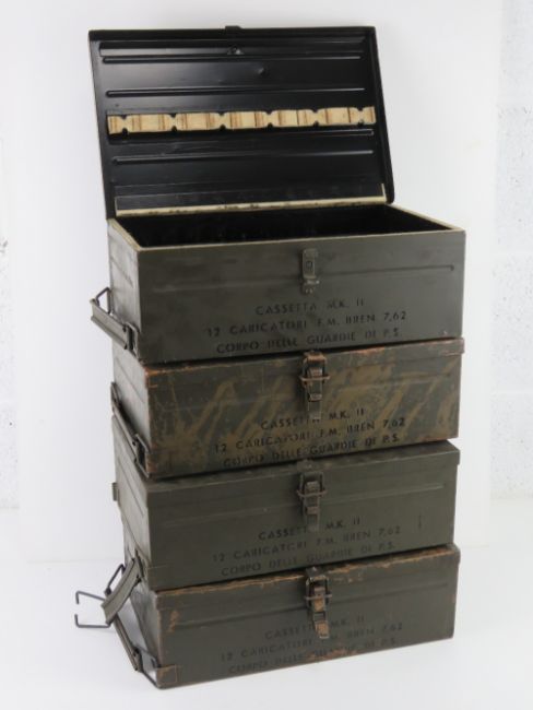 A quantity of four Italian 7.62 Bren magazines transit boxes.