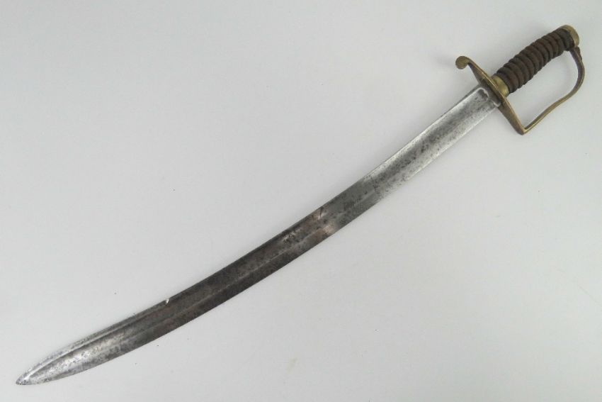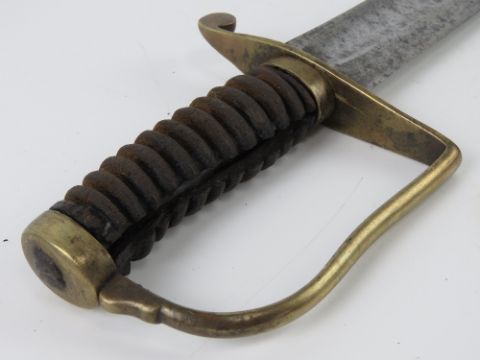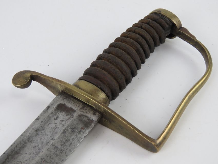 An early 1800s Police Constabulary cutlass, having brass hilt and guard, wooden grip, blade measuring 58cm in length.