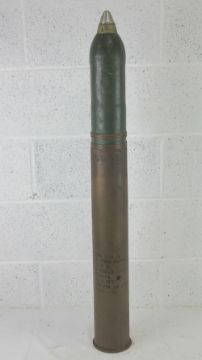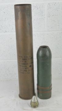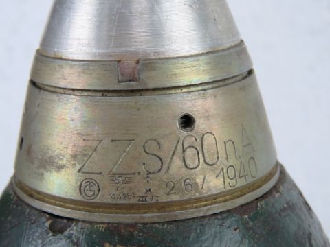 A WWII German 10.5cm 32st Illumination shell dated 1941, fuse dated 1940, both bearing German markings and stencilling upon.